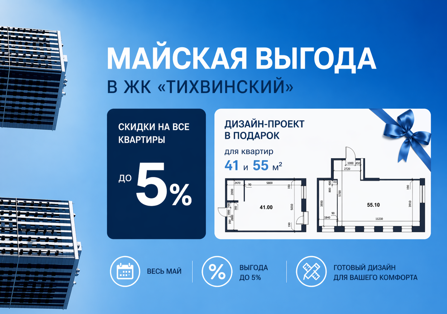 В течение всего мая в ЖК «Тихвинский» действует специальное предложение на покупку квартир!